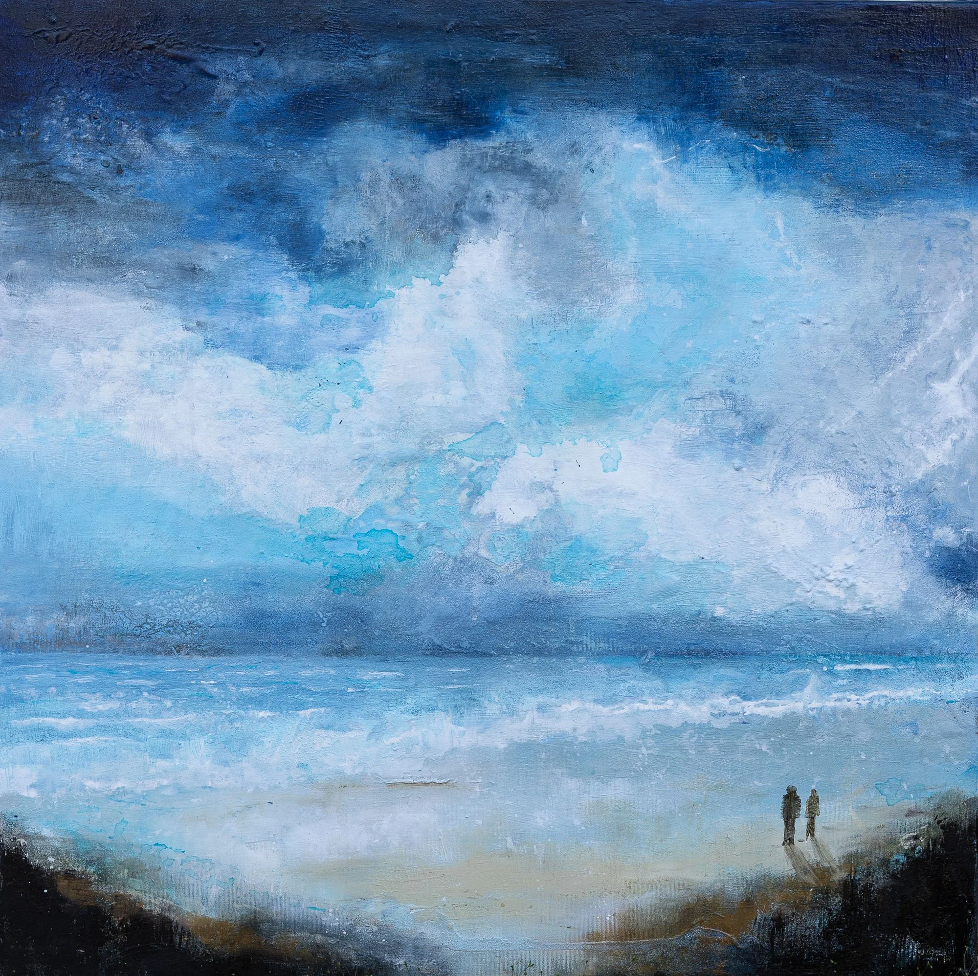 Havet og himlen er uendelige kilder til inspiration i min kunst. I denne linje af malerier bevæger jeg mig i blå nuancer og naturens skiftende farvespil – fra det rolige til det vilde, fra det lette til det dybe. Jeg har tilbragt mange timer ved kysten og på havet – både til fods og til søs med min far og venner – og det er netop disse oplevelser, der sætter tonen i mine værker.